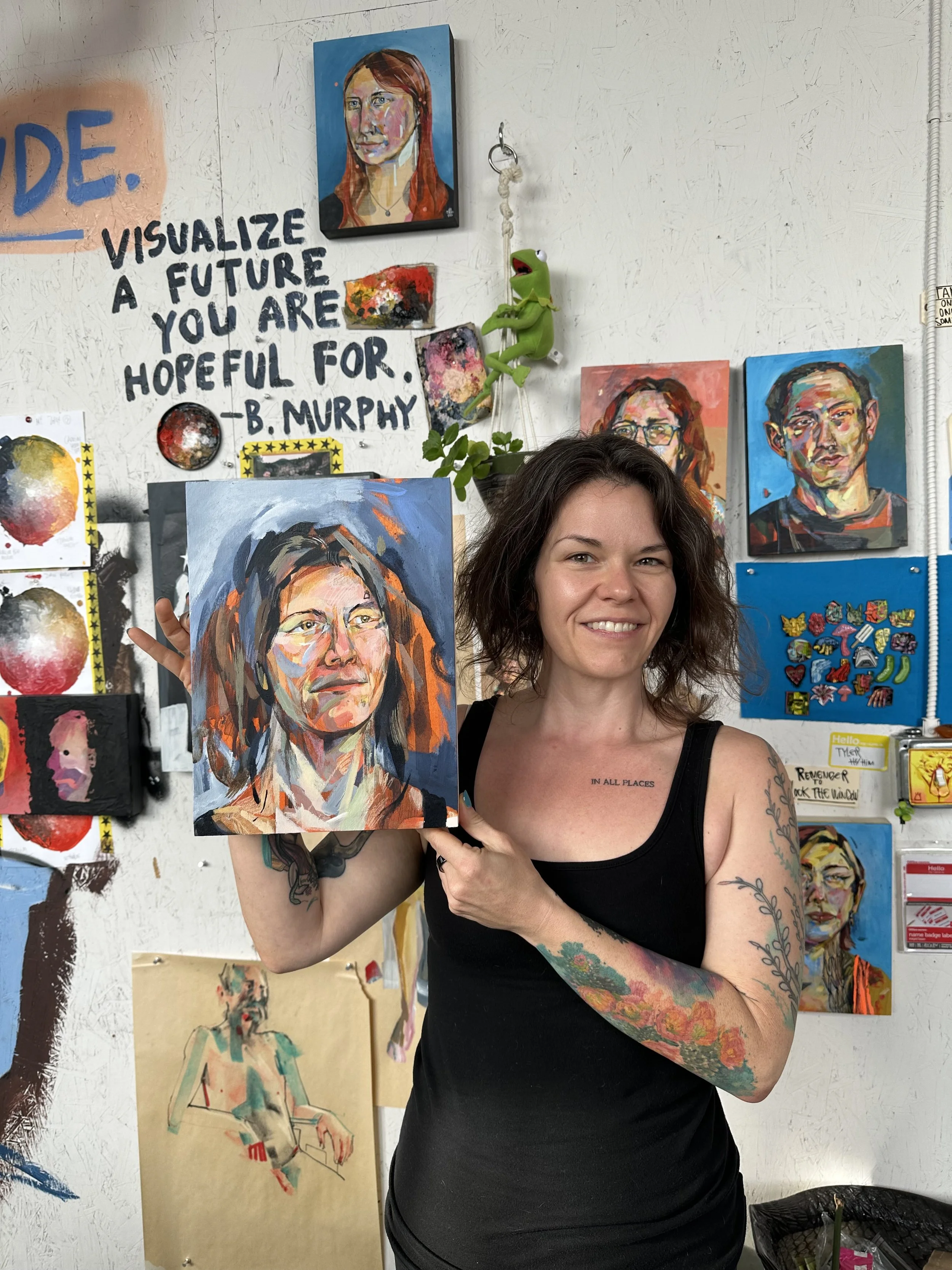 I have painted just over 50 people in the last 2 years out of the studio, including my parents pictured above. I often get asked why someone would want their portrait painted. I hear “why would I want a painting of myself?'“ and to that I say, There are SO MANY reasons someone would have their portrait painted. When I compare the experience to that of getting a tattoo, people have an easier time understanding the “why?”.